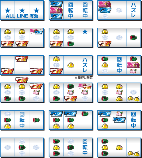 激アツ目※順押し・ハサミ打ち以外はNG! ※小役揃いはNG!