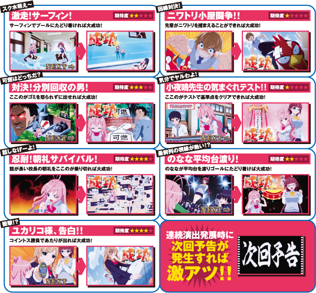 これらのチャンス役はチャンスイベント突入の契機。バリエーション豊富な連続演出を成功させればもちろんご褒美はボーナスだ!