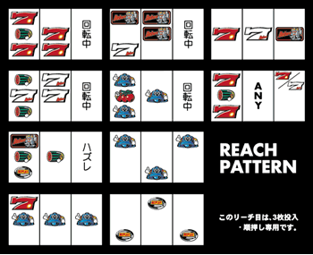 デビューは、5ラインAタイプの発展型とも言える、RB搭載のオーソドックスな7ラインAタイプです。リールパネルランプ「ルーネット」と液晶には負けない表現力で皆さまを楽しませる「プレイナビ」の搭載で、プレイヤーを絶対に飽きさせません。また、従来のパチスロサウンドでは到底味わう事ができなかったクラブサウンドが、強烈な響きを奏でます。