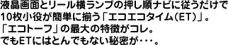 リール上部の液晶画面でもナビゲートが作動。左・中・右の指示に従って止めるだけ。