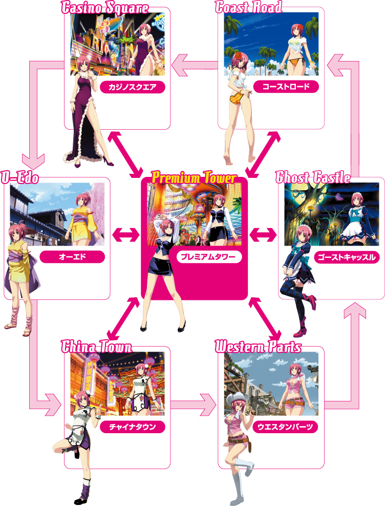 海岸通りをモチーフにしたステージ。常に暑い不思議な場所。水着姿が超キュート!!